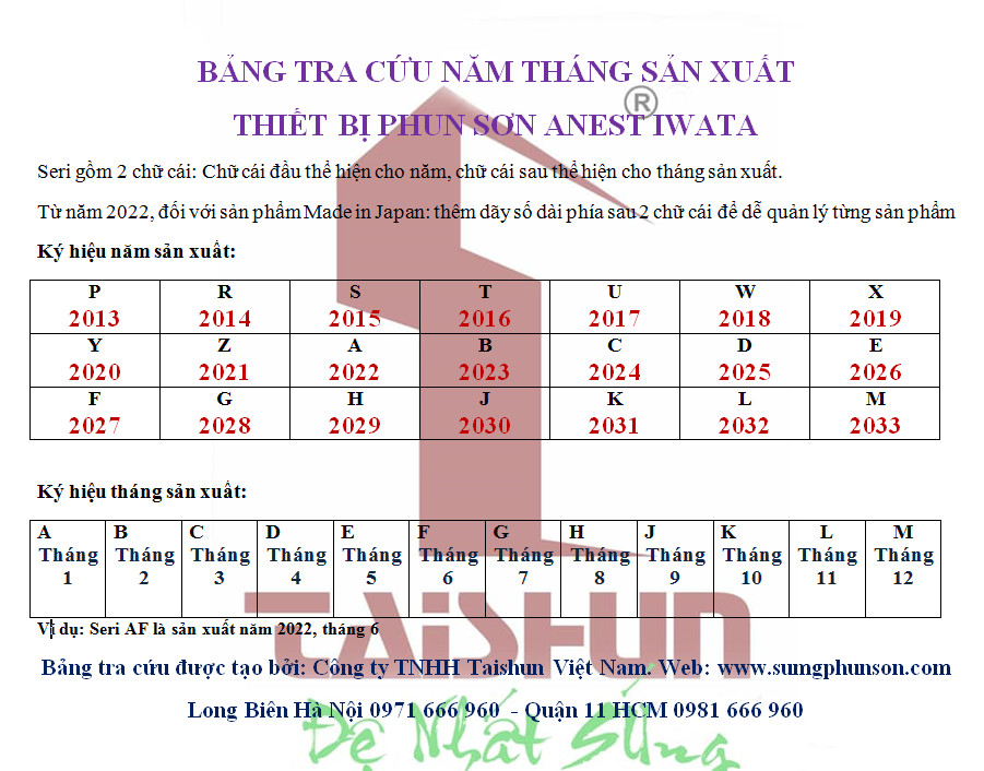 Công ty TNHH Taishun Việt Nam – đại lý ủy quyền chính thức của Anest Iwata cam kết: